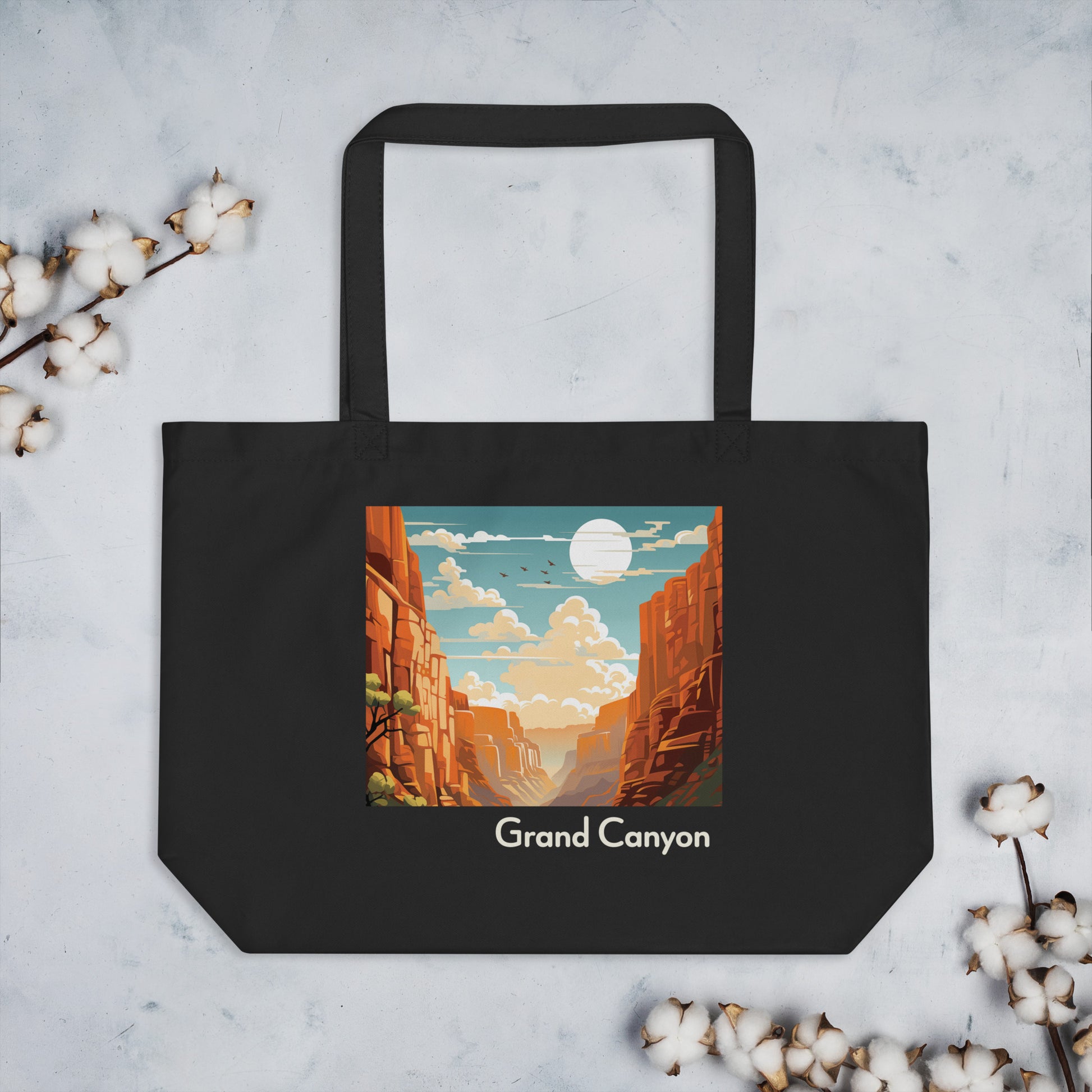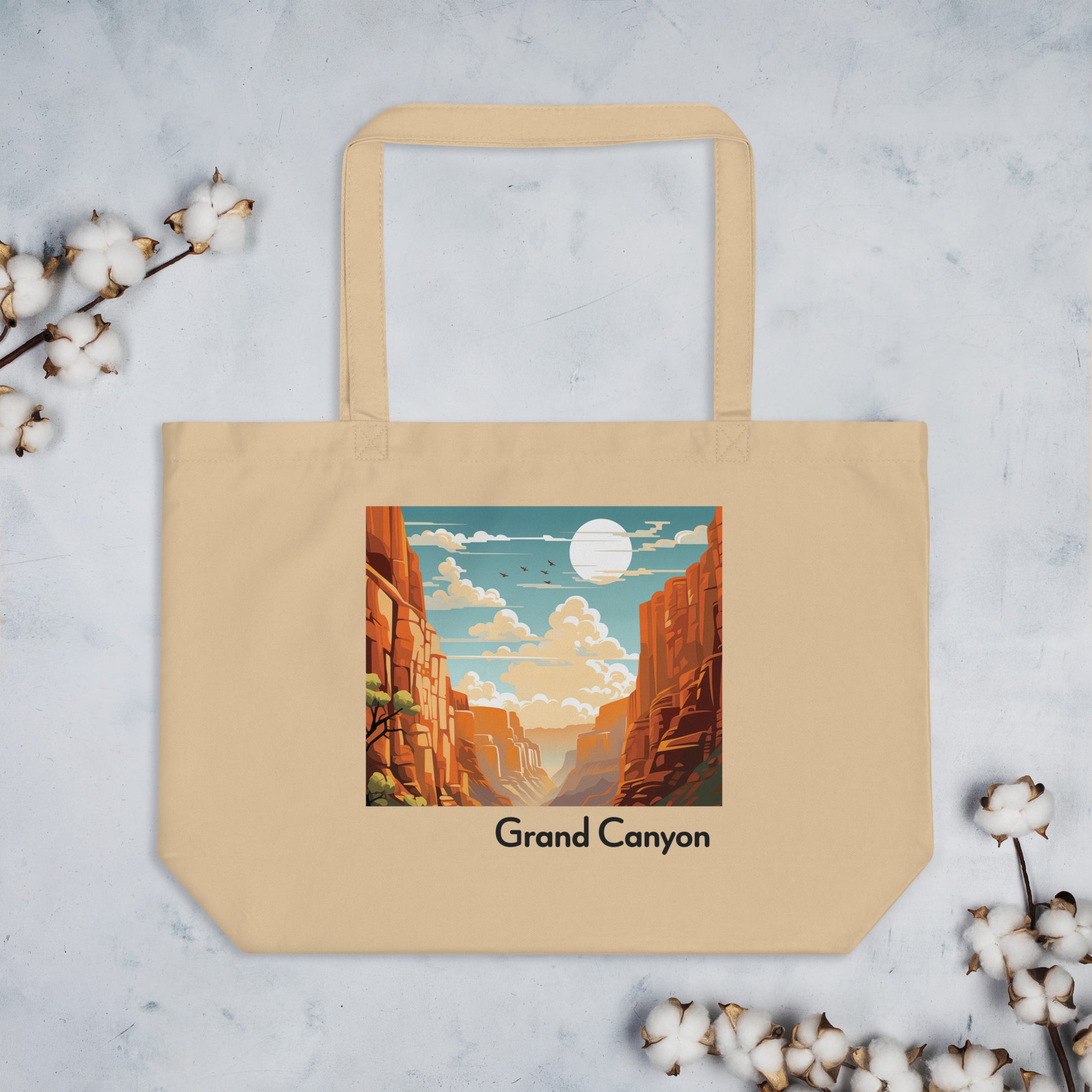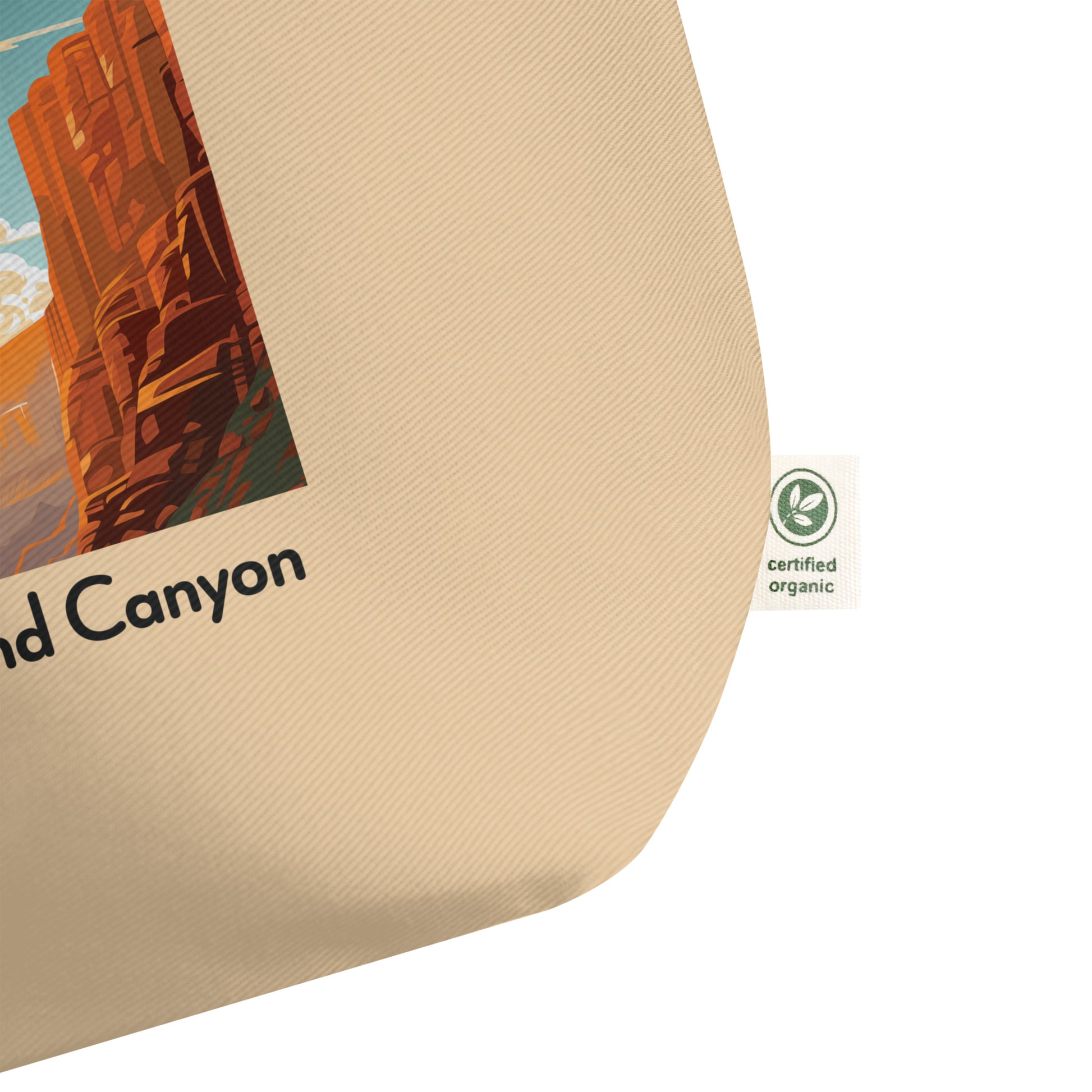 Stand on the edge of fashion and nature with our Grand Canyon-inspired organic tote bag. Immerse yourself in the vastness and beauty of the canyon's hues, embodied in every thread.